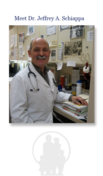 Dr. Jeffrey Schiappa was born and raised in the Chicago area, and maintains his practice in the south suburbs. He graduated from the University of Dayton in 1979, cum laude, with a Bachelor of Science in Biology. In 1983, he earned his Doctor of Osteopathy degree from the Chicago College of Osteopathic Medicine. Dr. Schiappa completed post-graduate training in 1984 through an internship at Grandview Hospital in Dayton, Ohio. From 1984 through 1986, he fulfilled his residency in Family Practice at the Chicago College of Osteopathic Medicine. Dr. Schiappa became certified through the American Board of Osteopathic Family Practitioners in 1987; when he opened his private practice. Dr. Schiappa fulfills annual continuing education requirements; and he frequently facilitates education for nurse practitioners and interns.